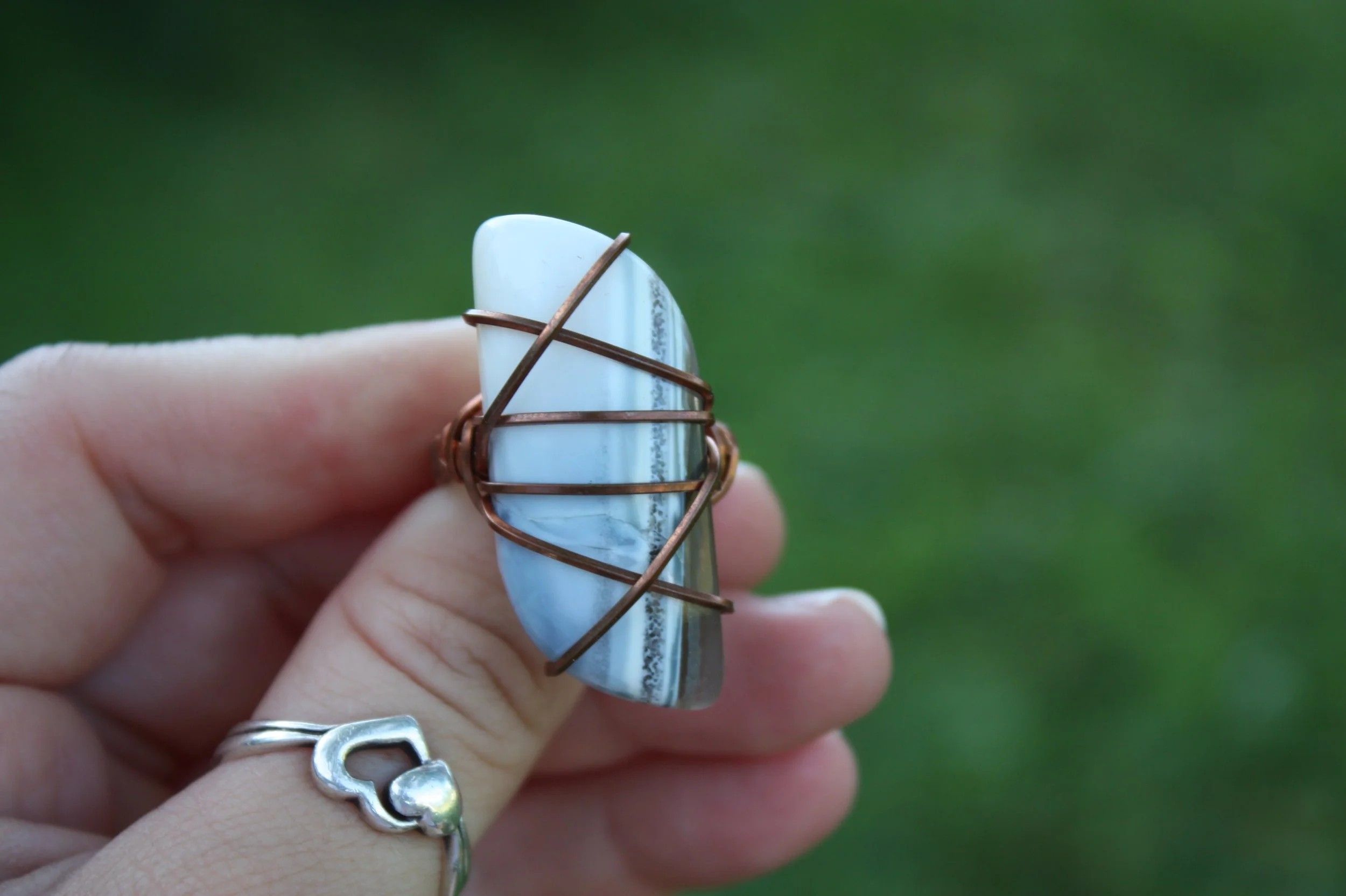 Blue Owyhee Opal Ring Wrapped in Copper - Size 8