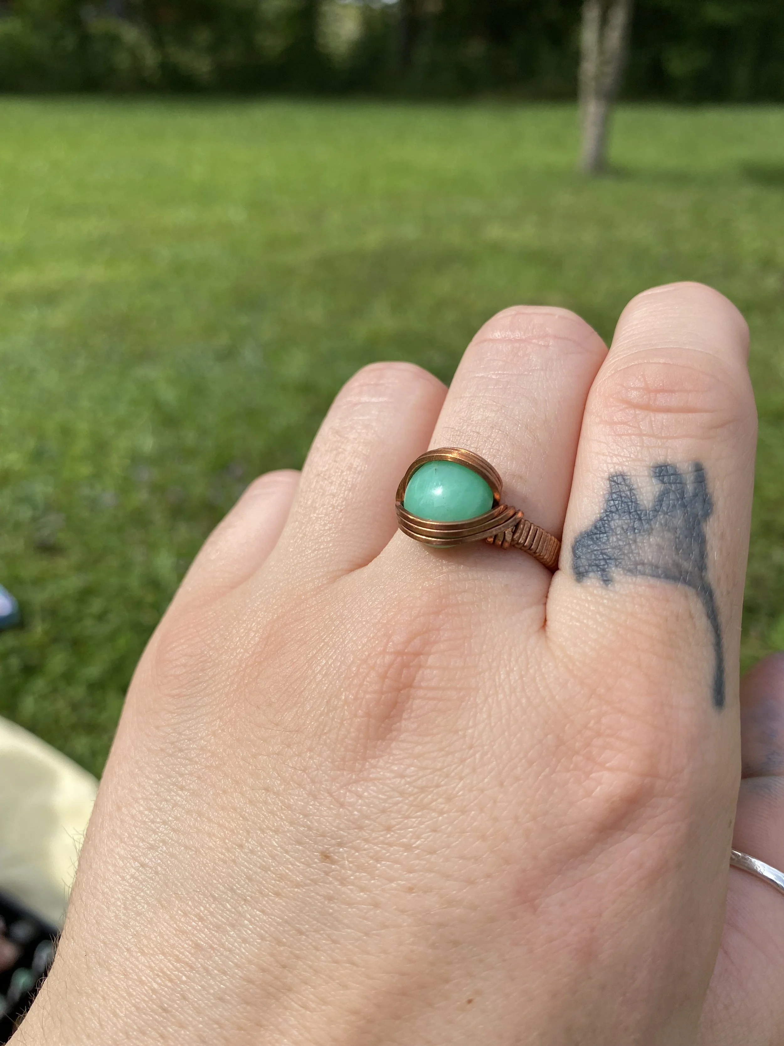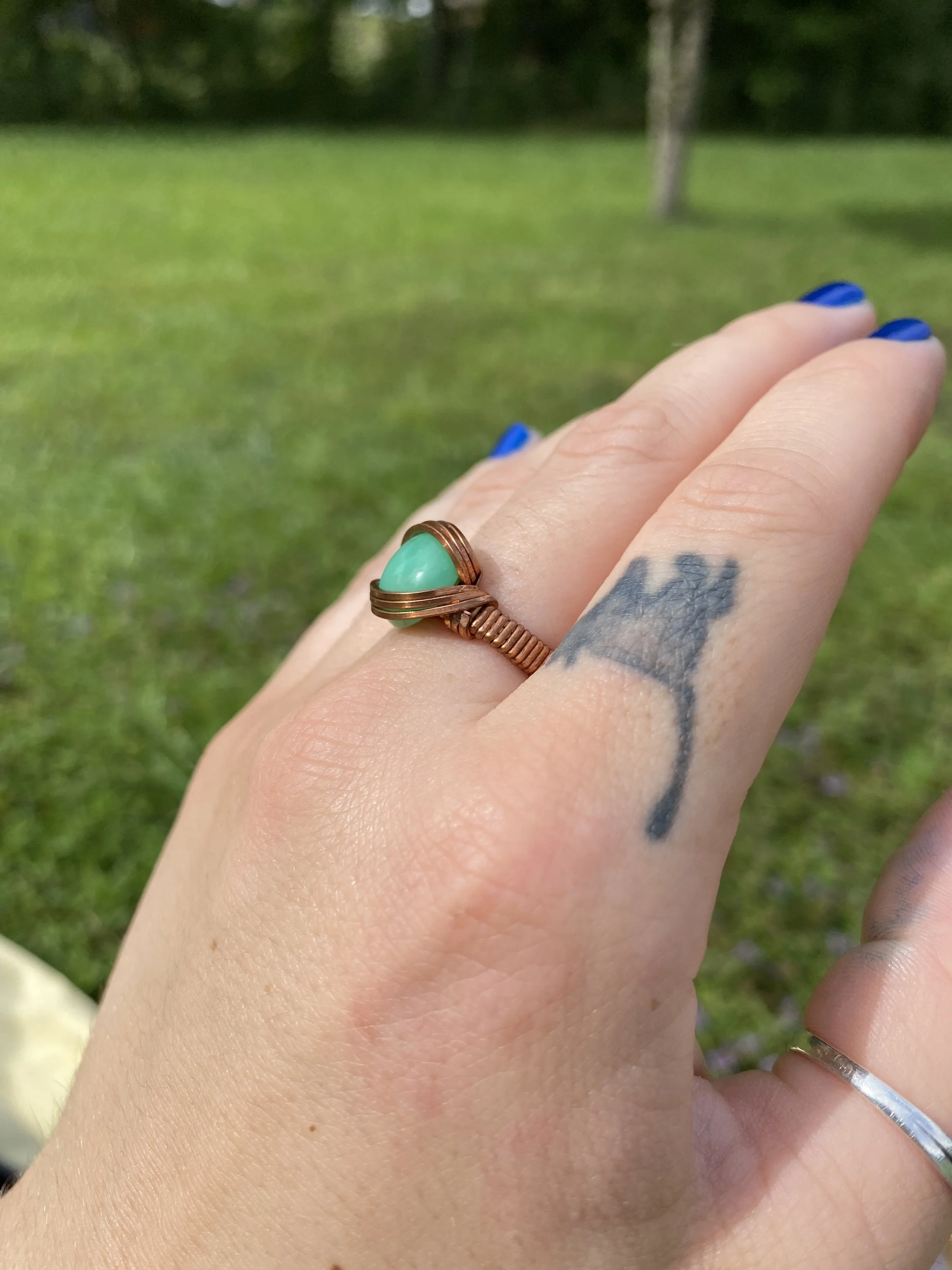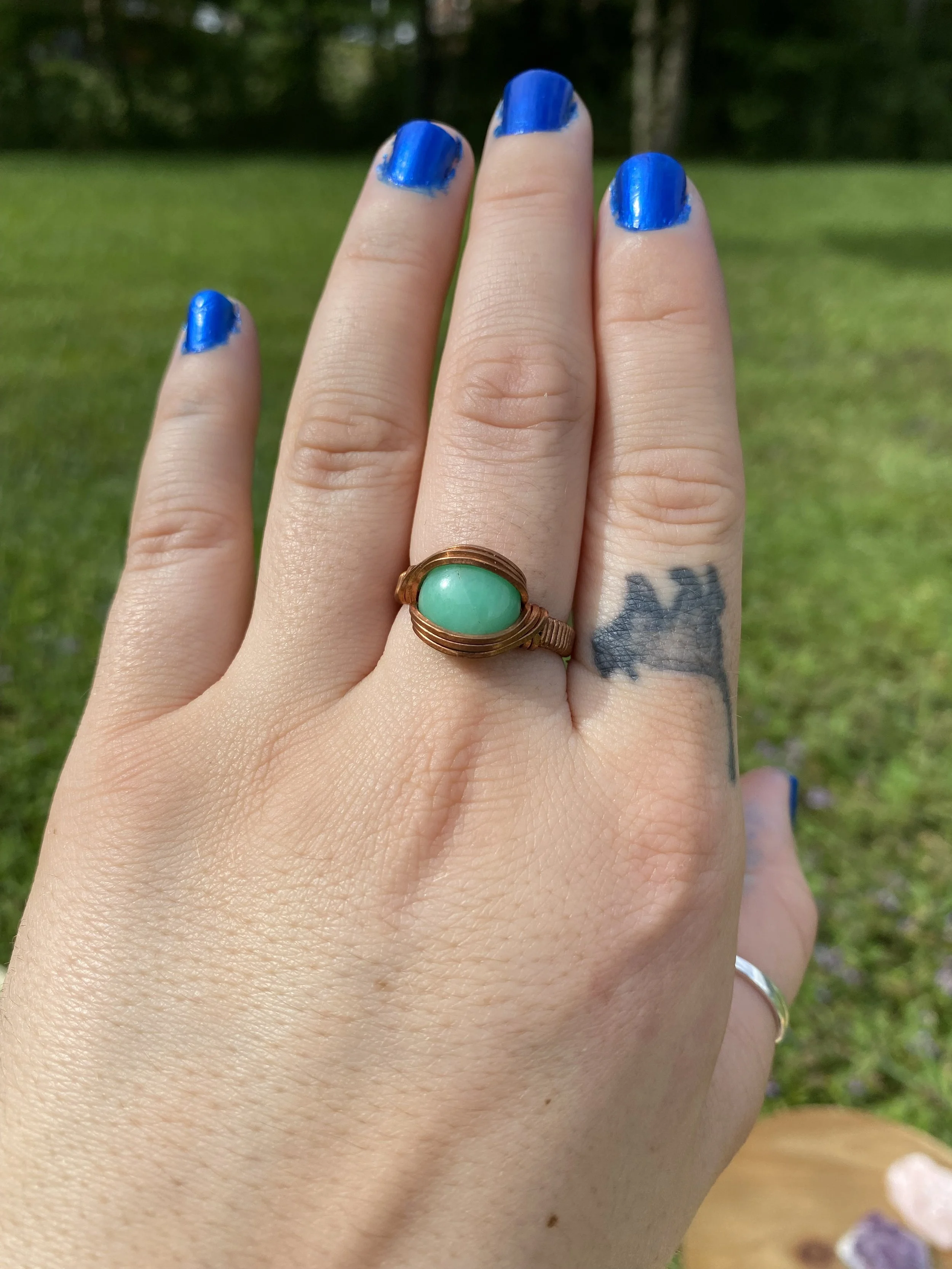 Chrysoprase Ring Wrapped in Copper - Size 8