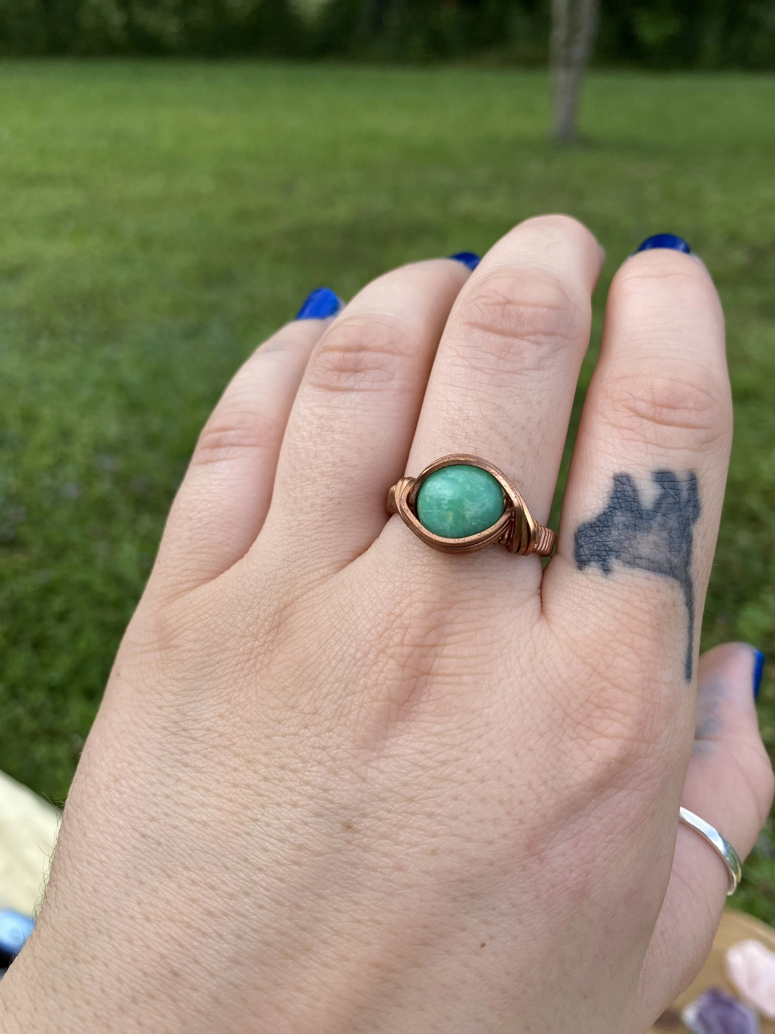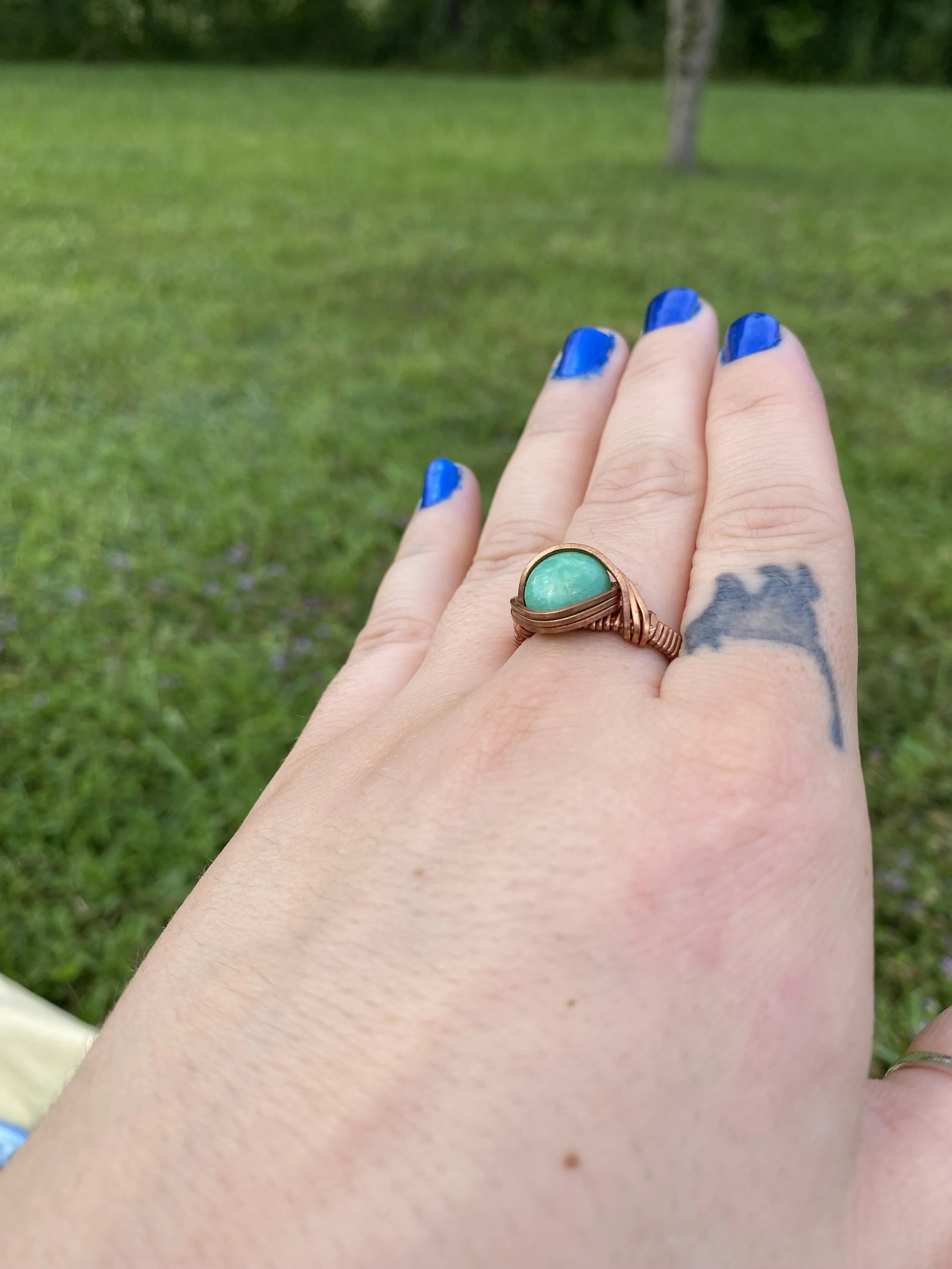 Chrysoprase Ring Wrapped in Copper - Size 9