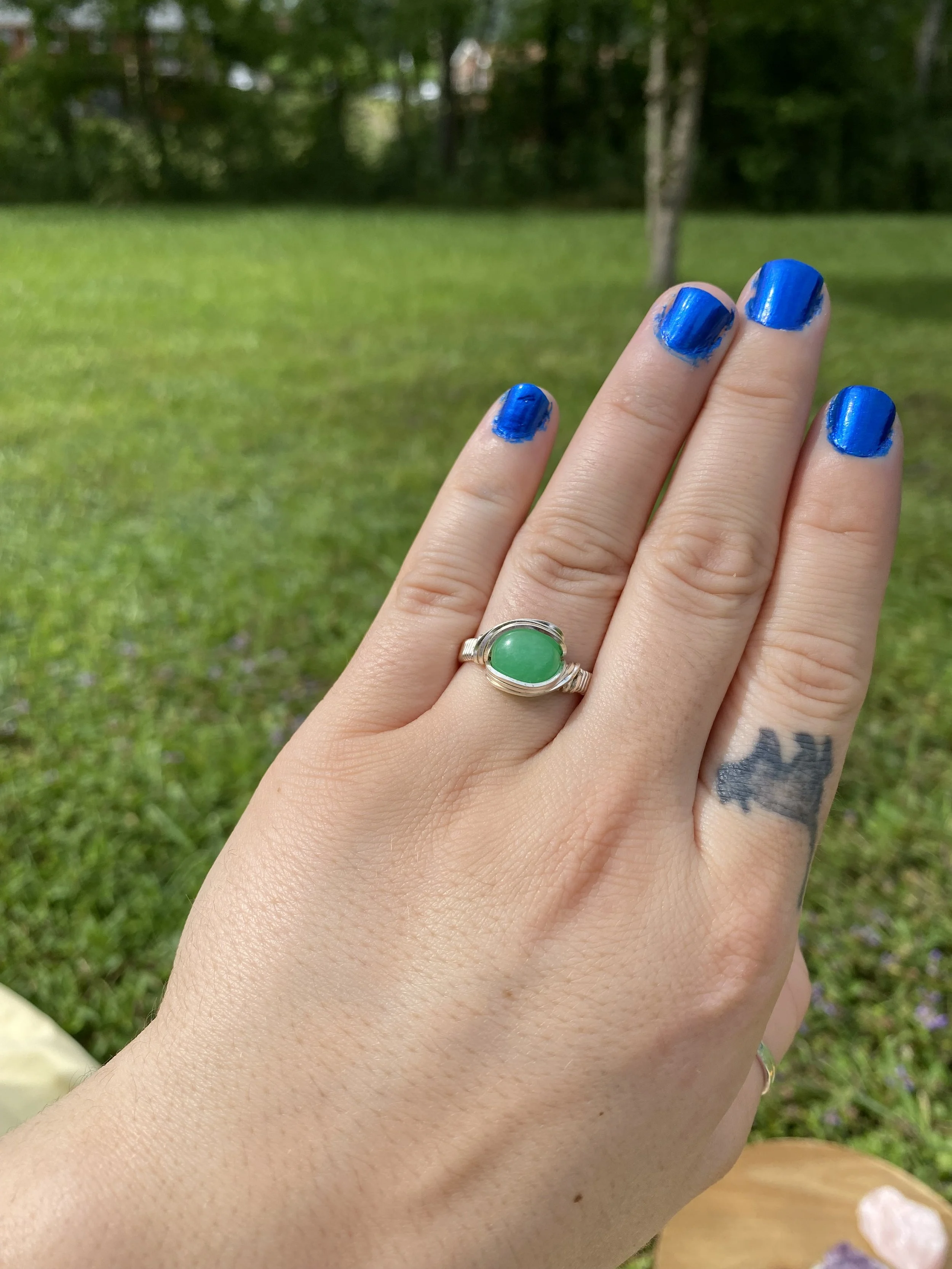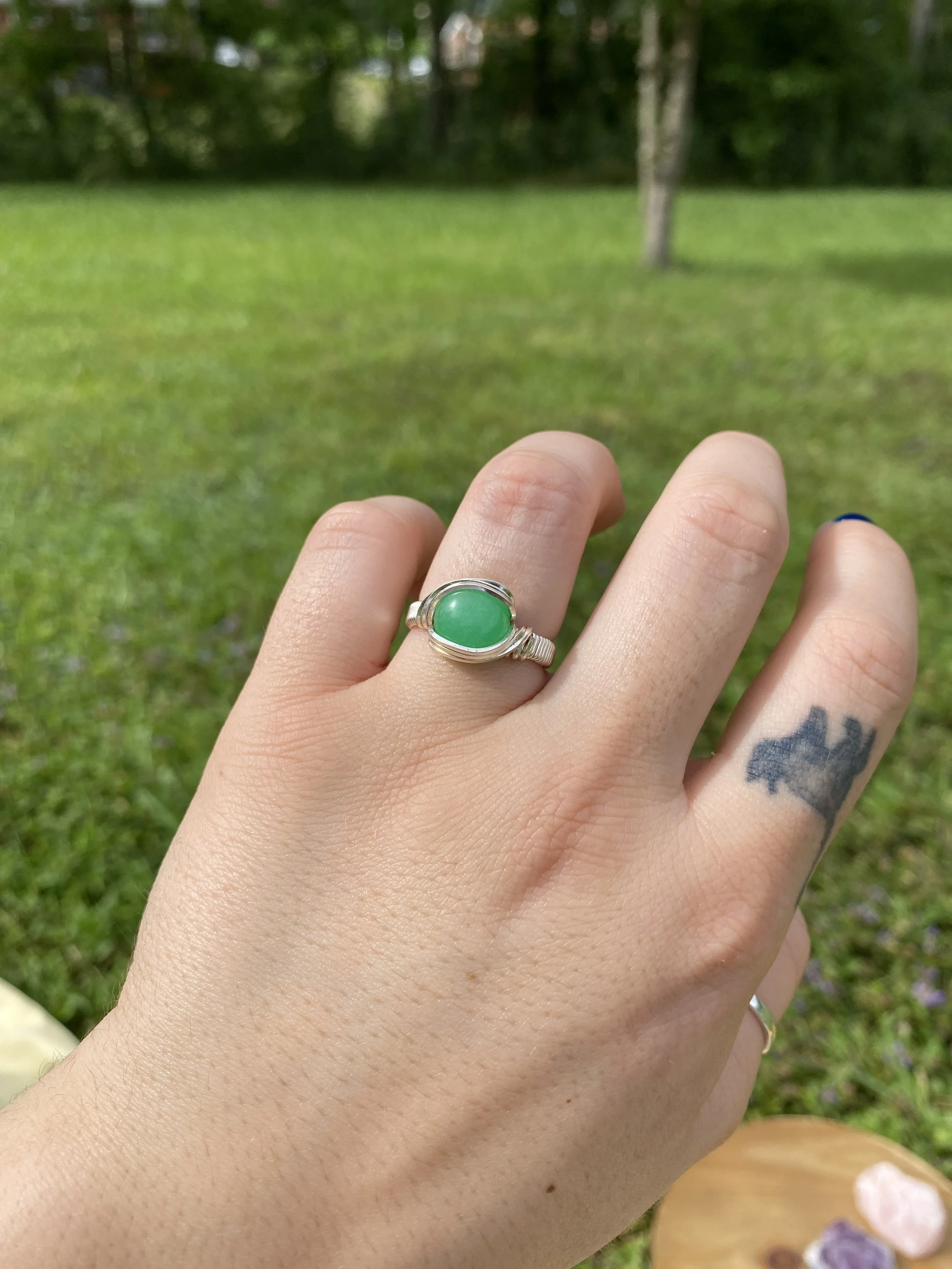 Chrysoprase Ring Wrapped in Silver - Size 5