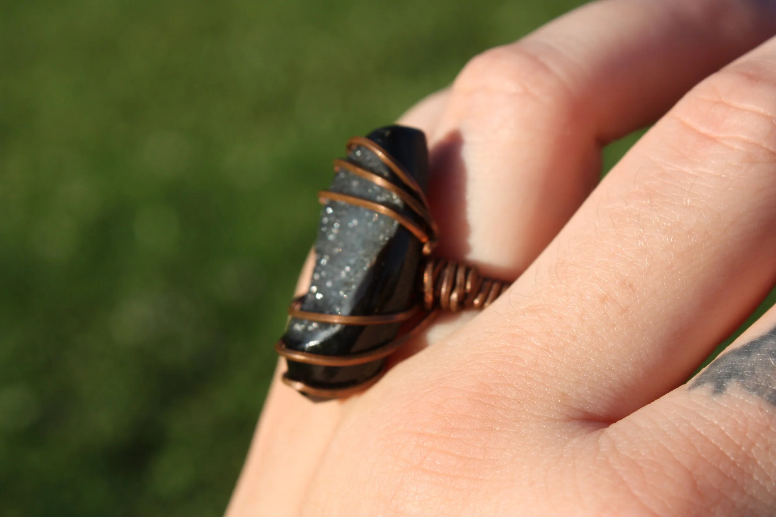 Druzy Quartz Ring Wrapped in Copper - Size 6