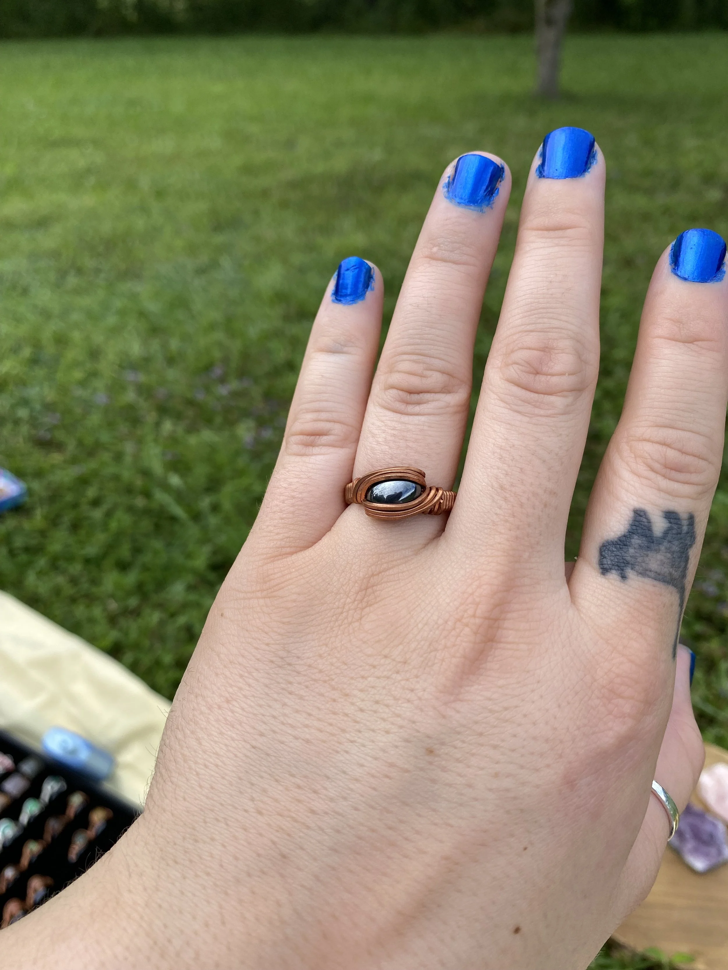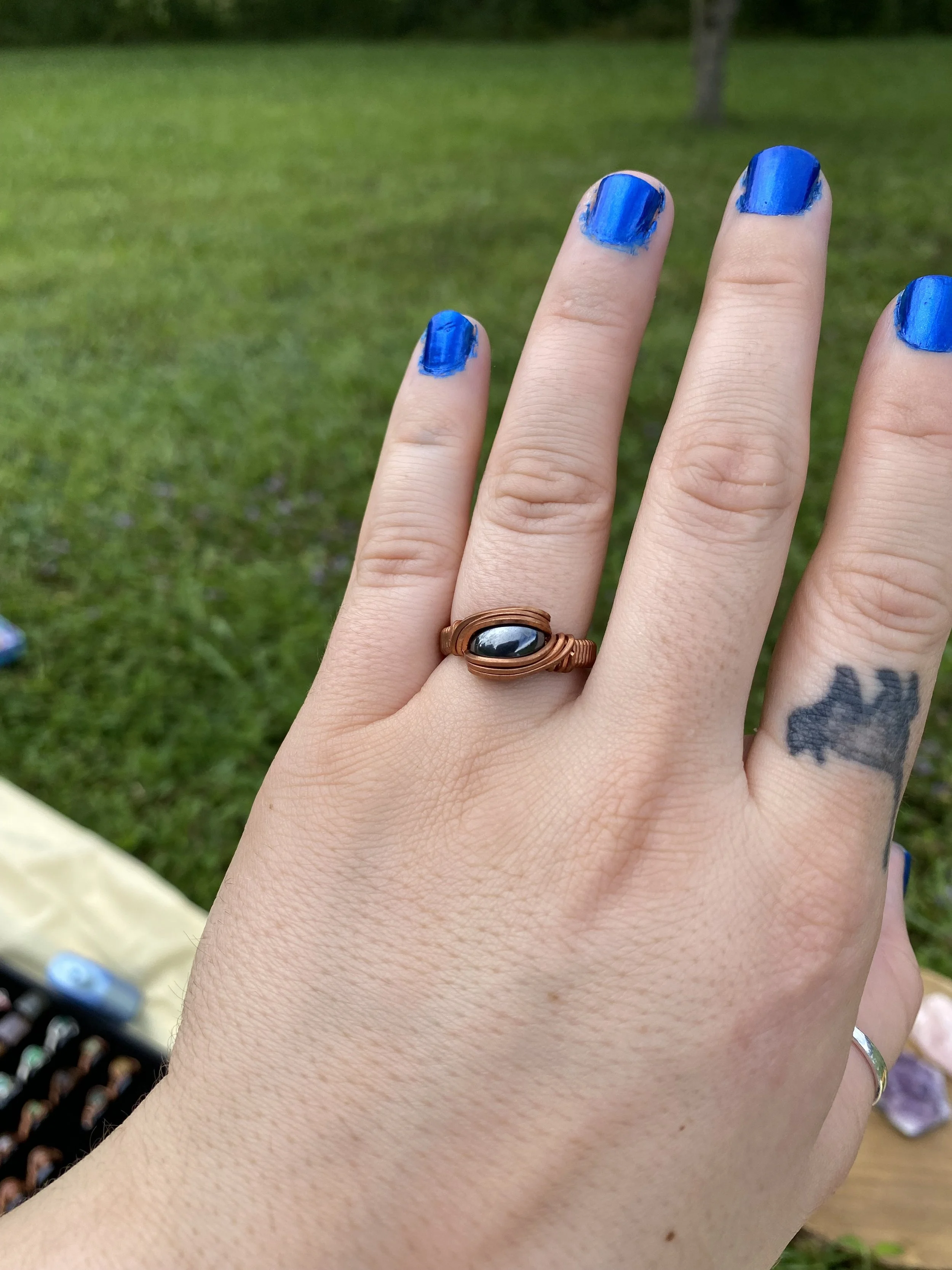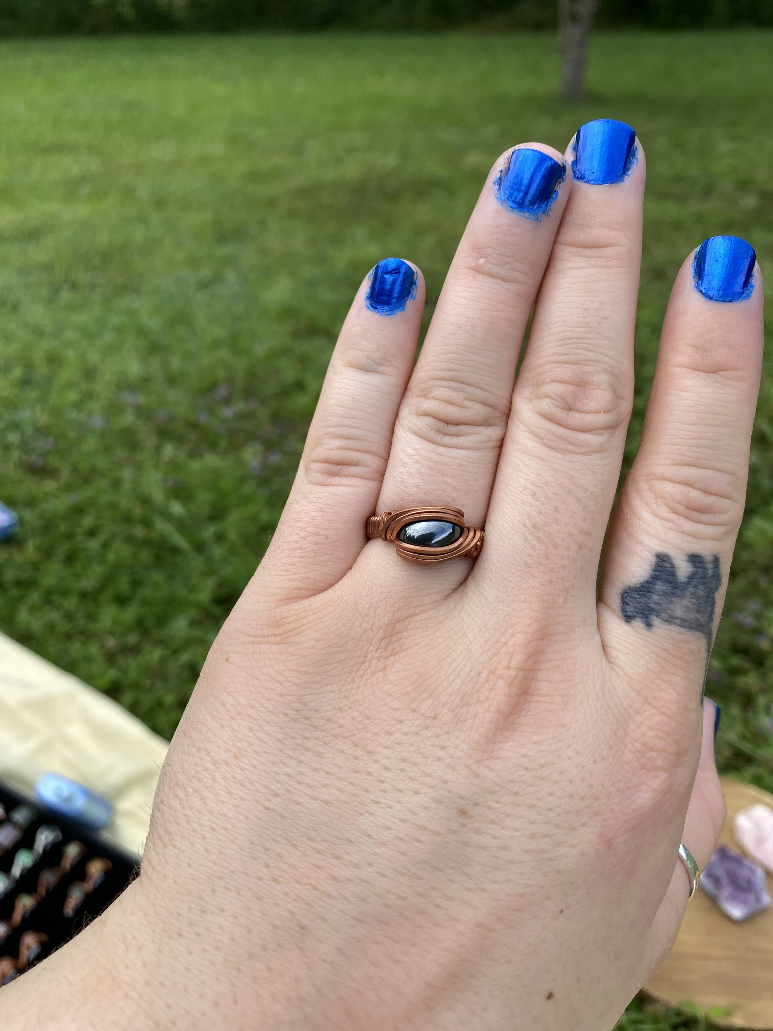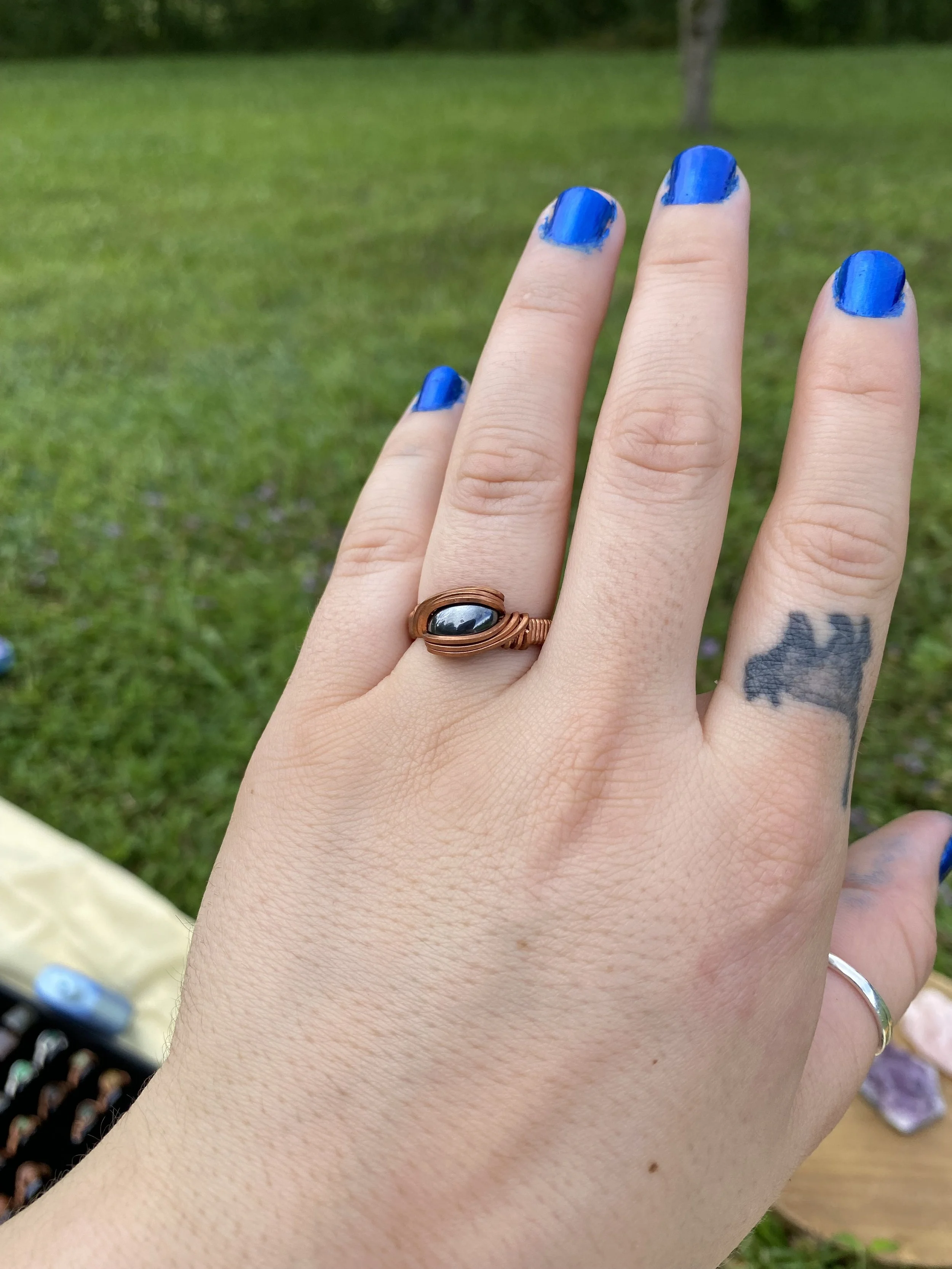 Hematite Ring Wrapped in Copper - Size 6 & 1/2
