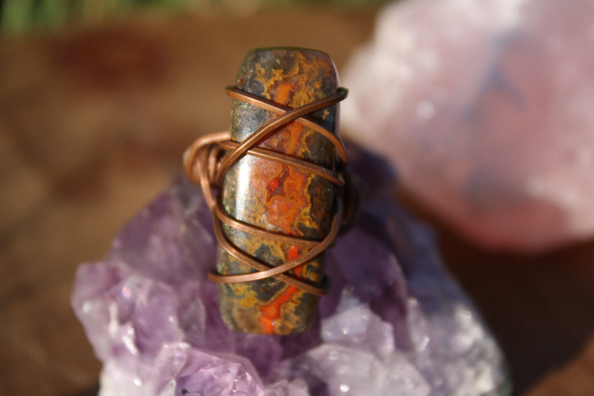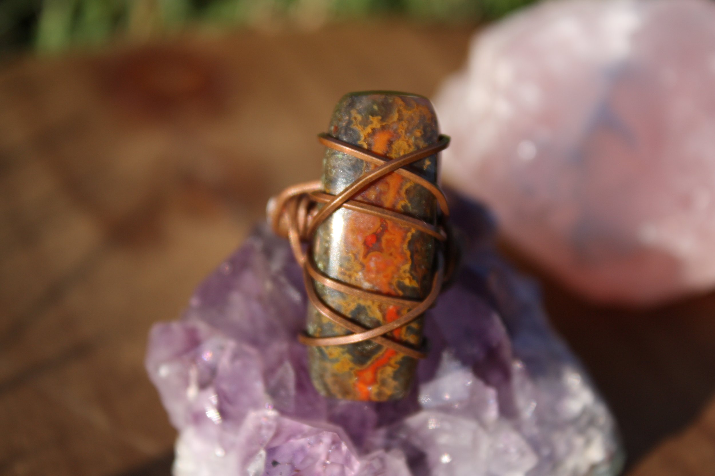 Lace Agate Ring Wrapped in Copper - Size 4 & 1/2
