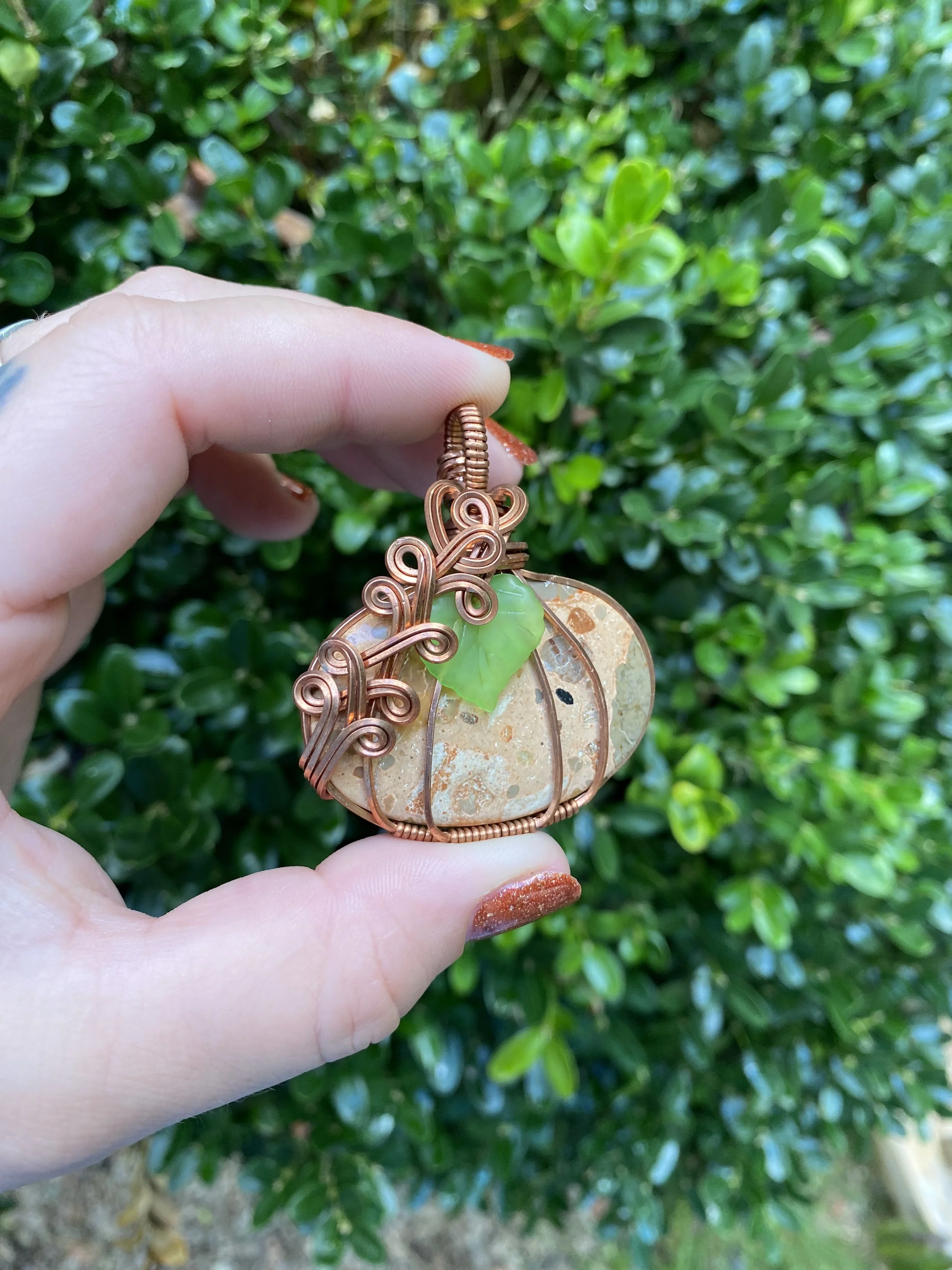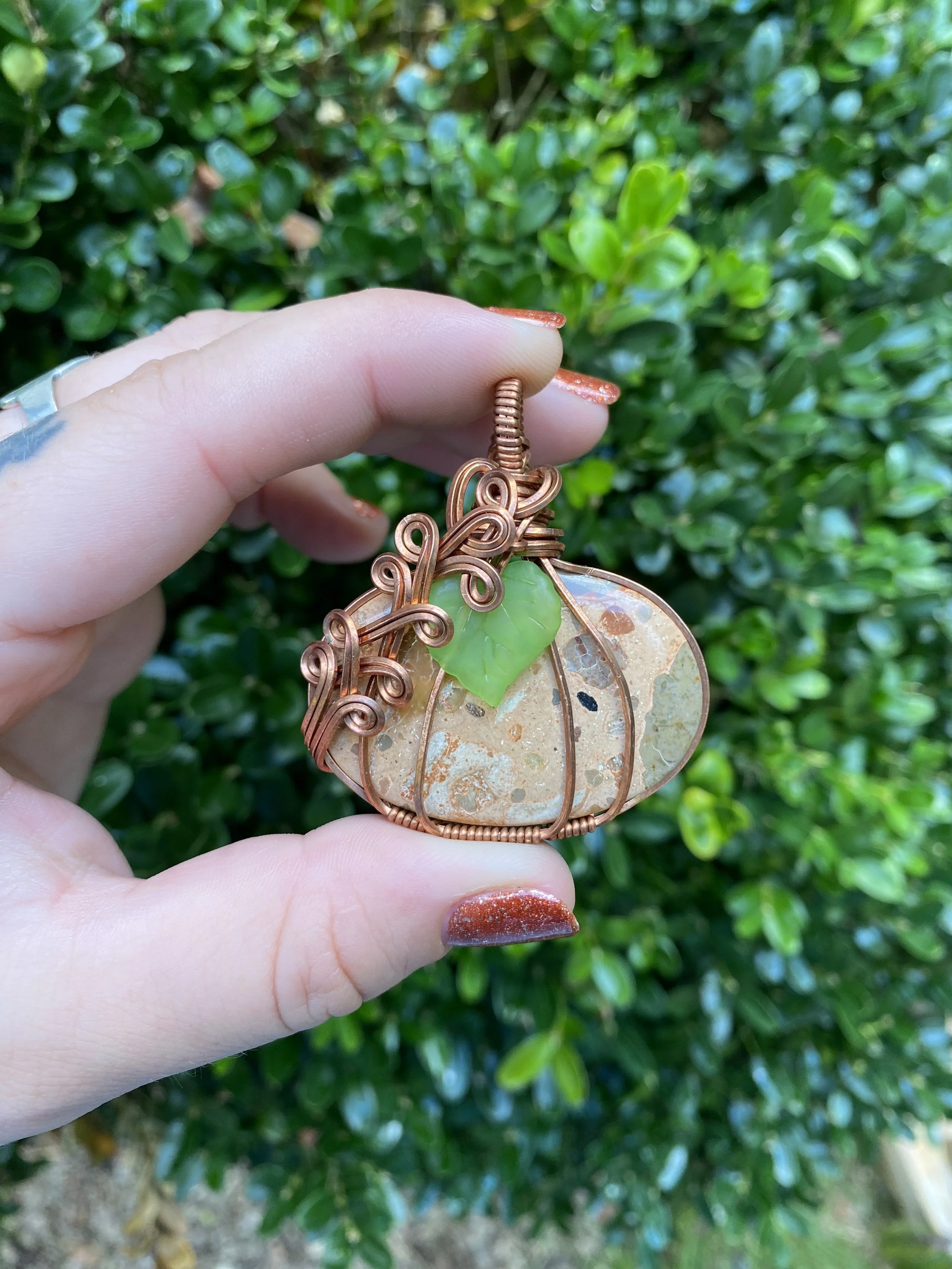 Shop › Large Coffee Jasper Pumpkin Wrap Image 1 of 10 Image 2 of 10 Image 3 of 10 Image 4 of 10 Image 5 of 10 Image 6 of 10 Image 7 of 10 Image 8 of 10 Image 9 of 10 Image 10 of 10 Large Coffee Jasper Pumpkin Wrap $45.00 Purchase Added! Reviews Reviewer Name Review Date Star Rating Description Posted on Etsy Product Show More