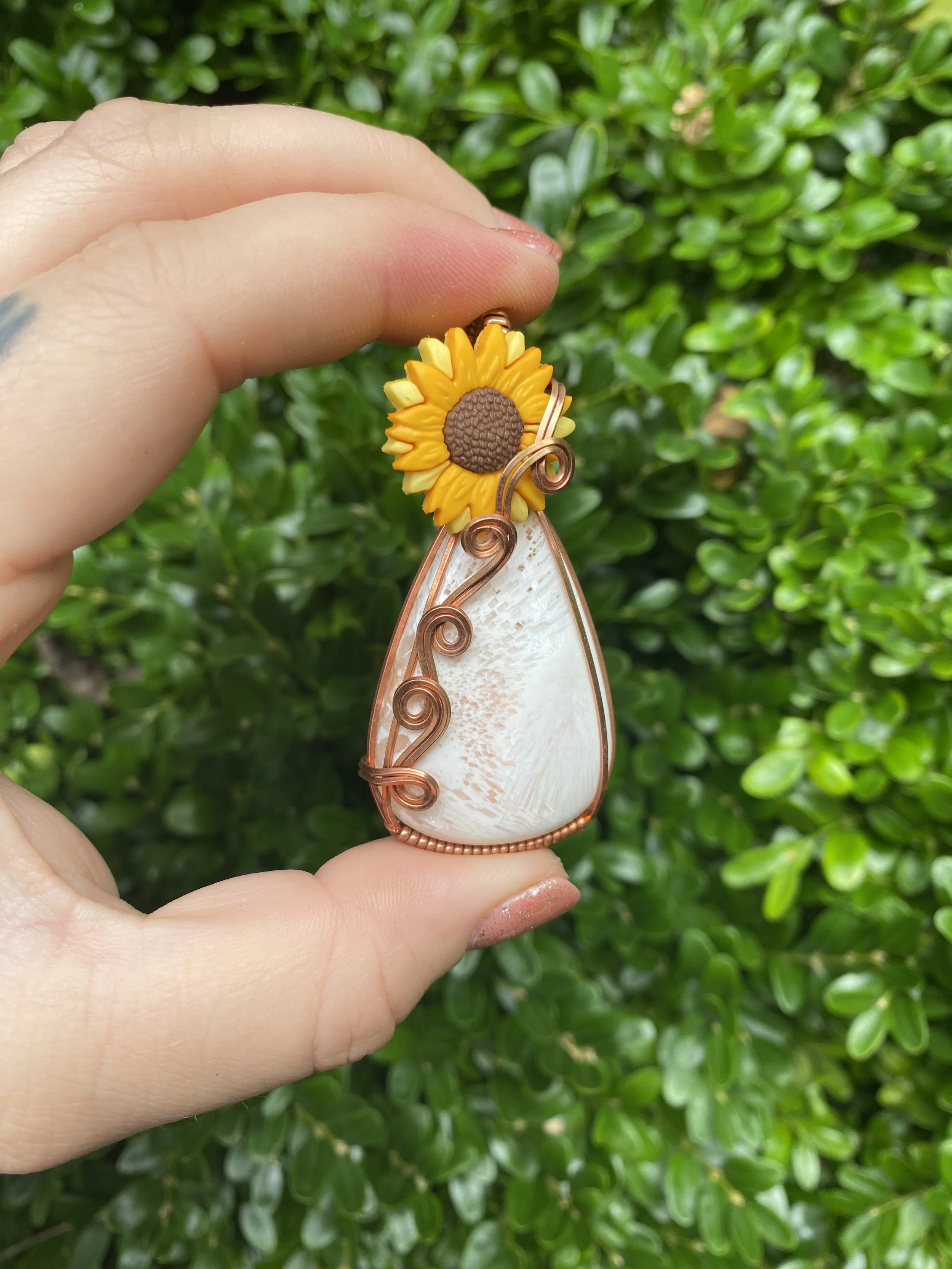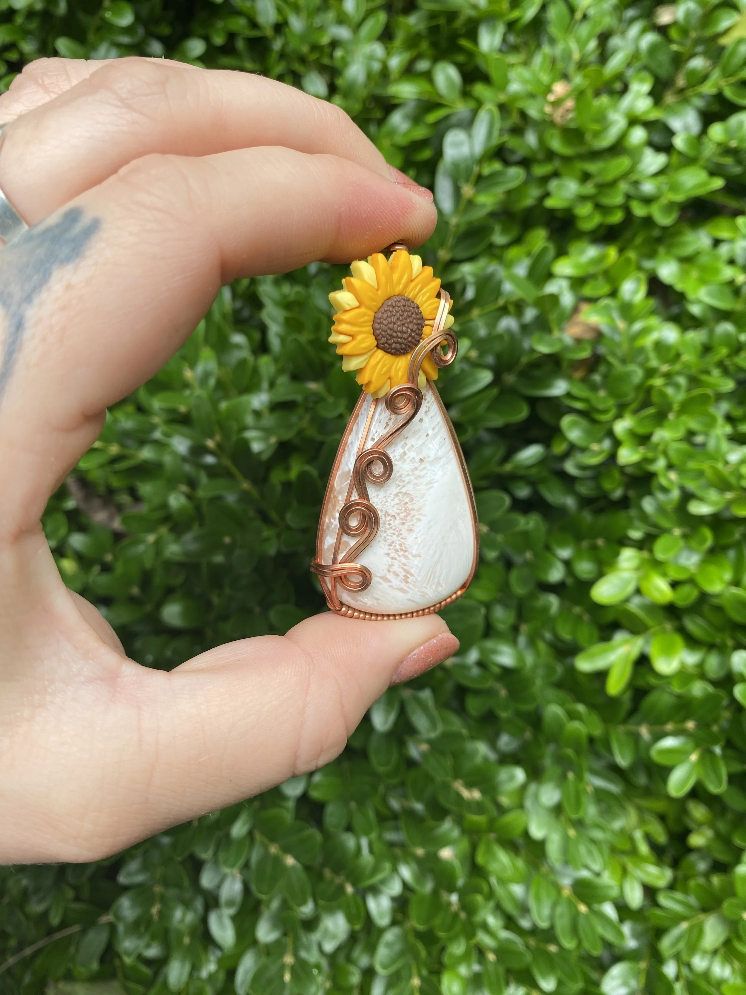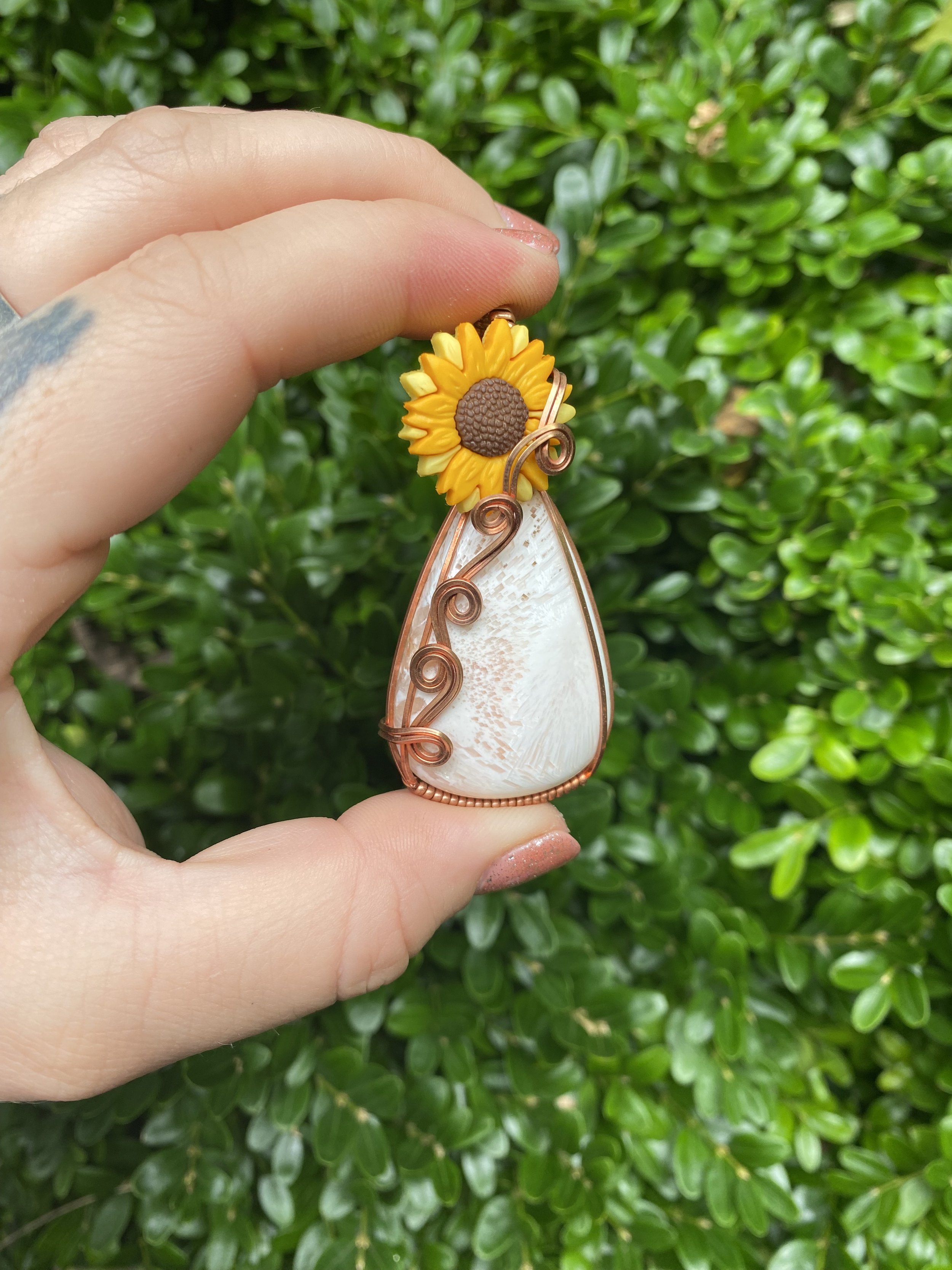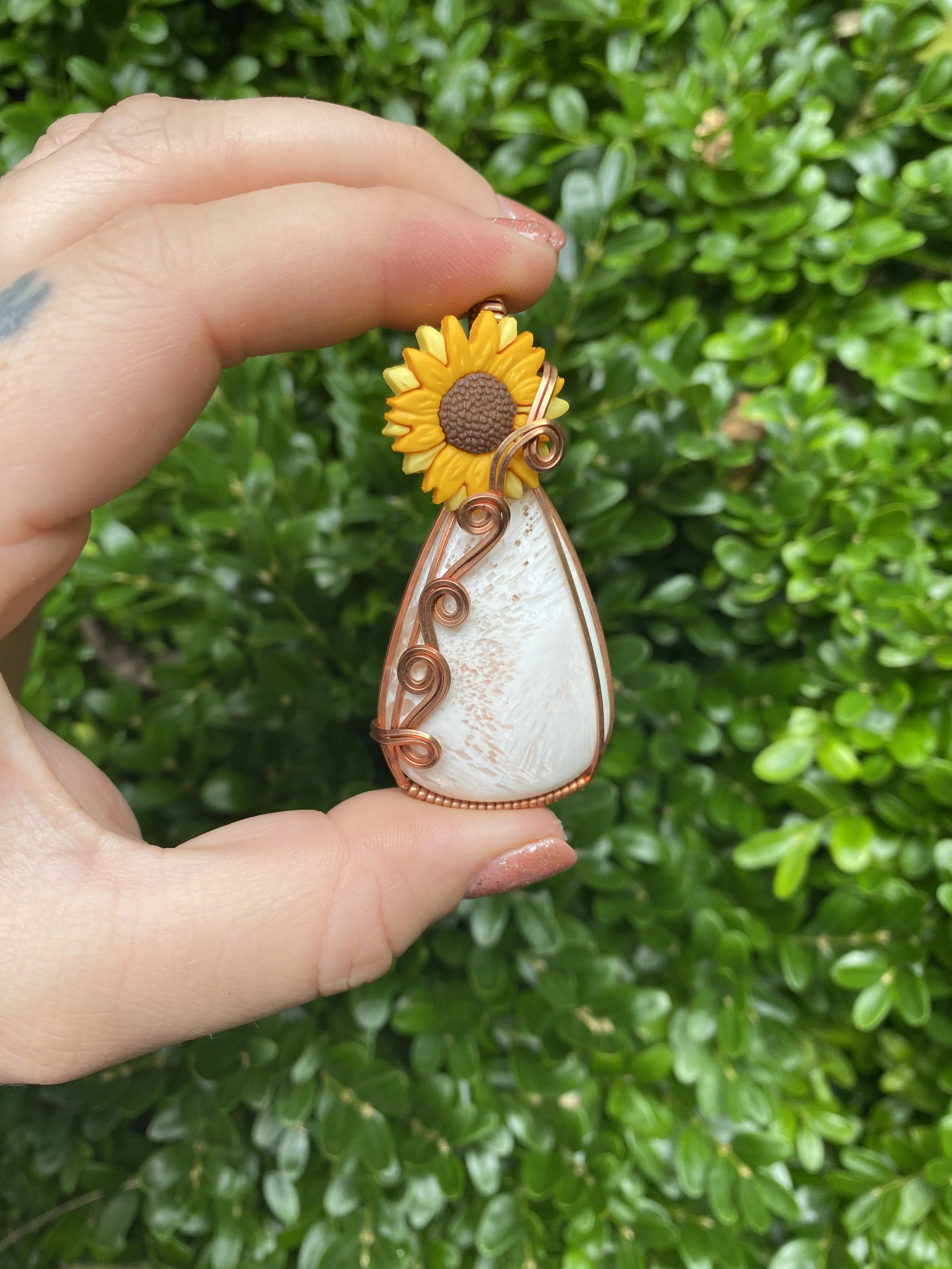 Shop › Peach Scolecite Sunflower Wire Wrap Image 1 of 10 Image 2 of 10 Image 3 of 10 Image 4 of 10 Image 5 of 10 Image 6 of 10 Image 7 of 10 Image 8 of 10 Image 9 of 10 Image 10 of 10 Peach Scolecite Sunflower Wire Wrap $40.00 Purchase Added! Reviews Reviewer Name Review Date Star Rating Description Posted on Etsy Product Show More