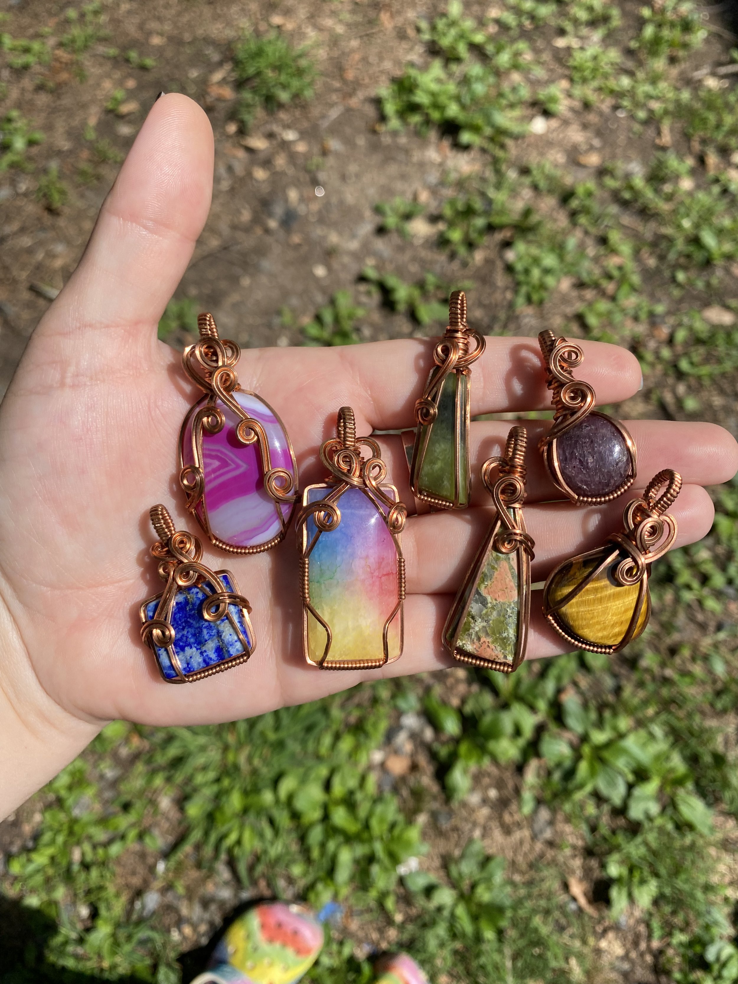 Shop › Pink Agate Wrapped in Copper Image 1 of 5 Image 2 of 5 Image 3 of 5 Image 4 of 5 Image 5 of 5 Pink Agate Wrapped in Copper $25.00 One of the 25 wraps included in September, 2023’s “25 on the 25th”! Comes with a free necklace to hang it on. Purchase Added! One of the 25 wraps included in September, 2023’s “25 on the 25th”! Comes with a free necklace to hang it on. Reviews Reviewer Name Review Date Star Rating Description Posted on Etsy Product Show More