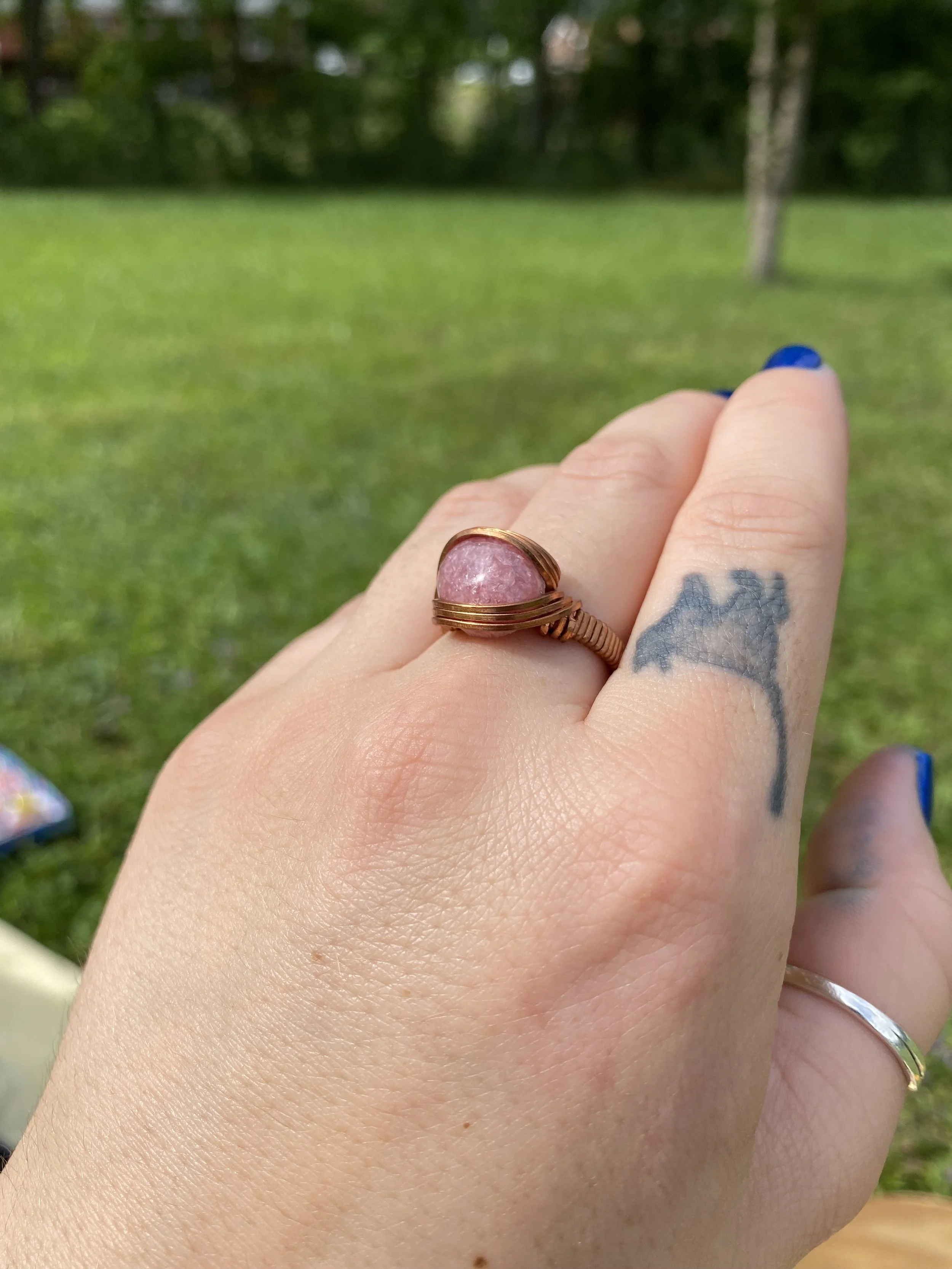 Rhodochrosite Ring Wrapped in Copper - Size 8 & 1/2