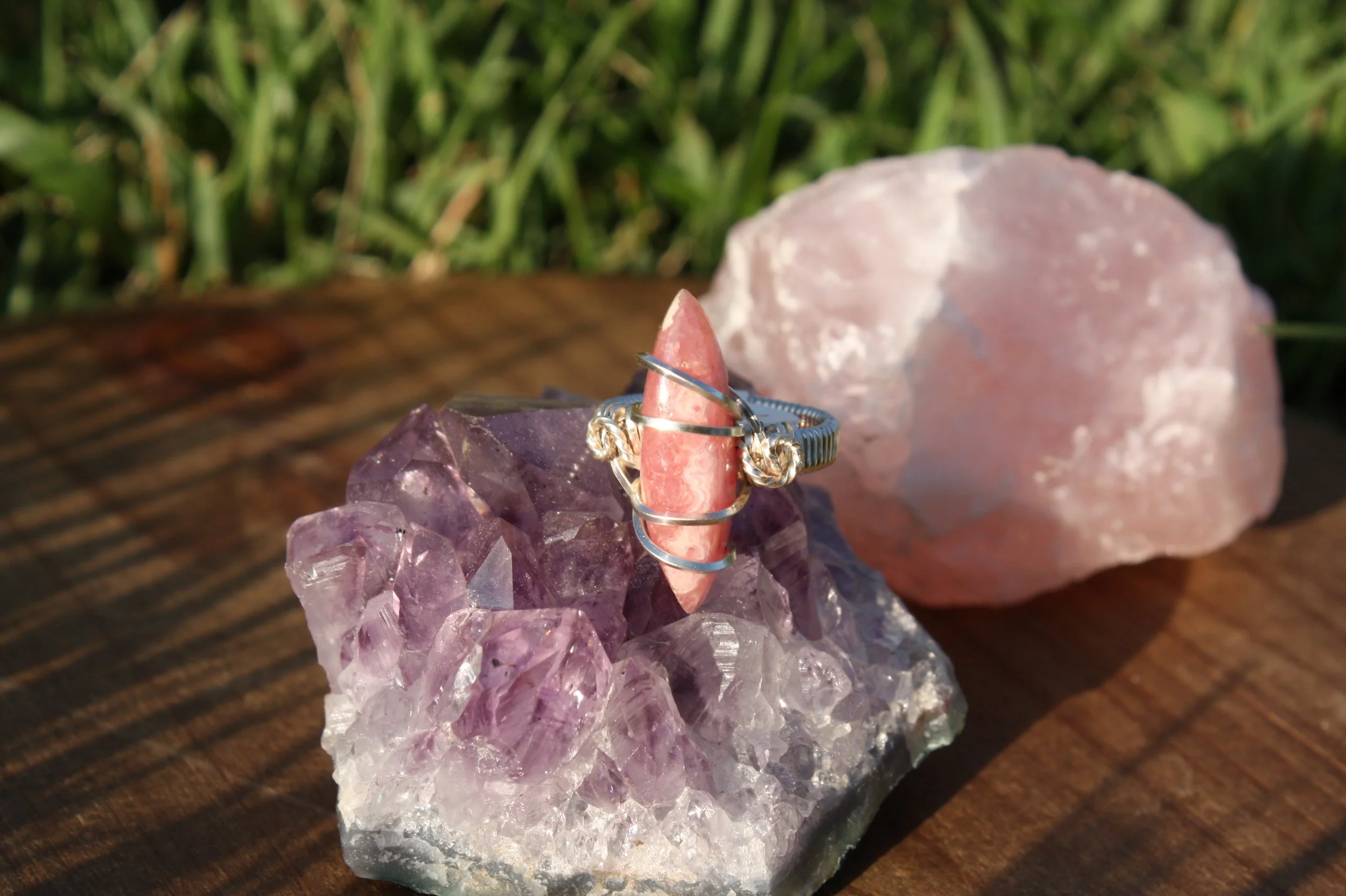 Rhodochrosite Ring Wrapped in Silver - Size 4