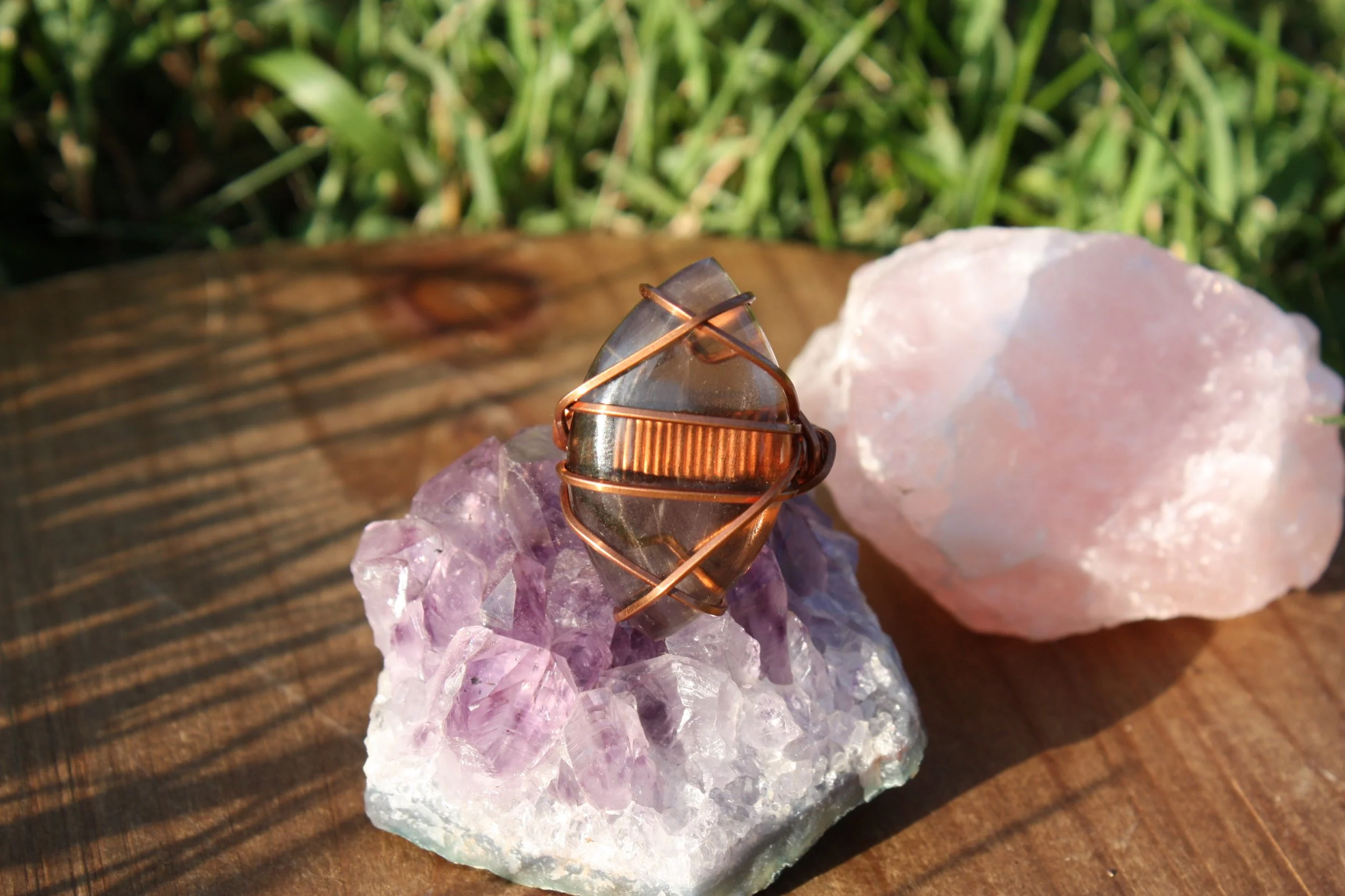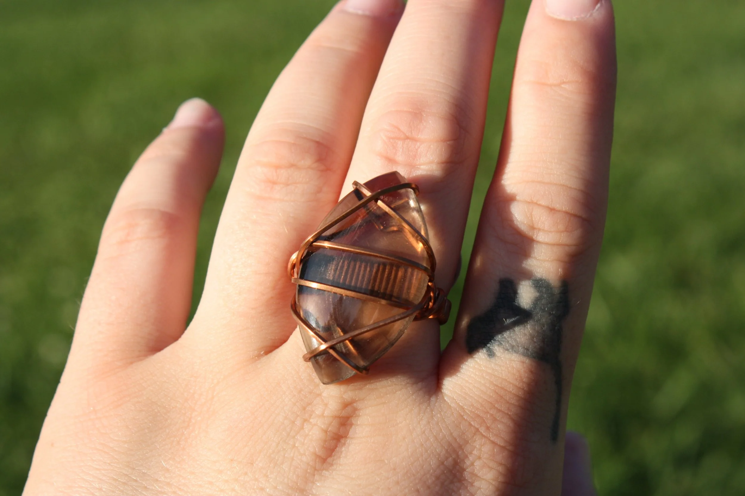 Smoky Quartz Ring Wrapped in Copper - Size 7 & 1/2