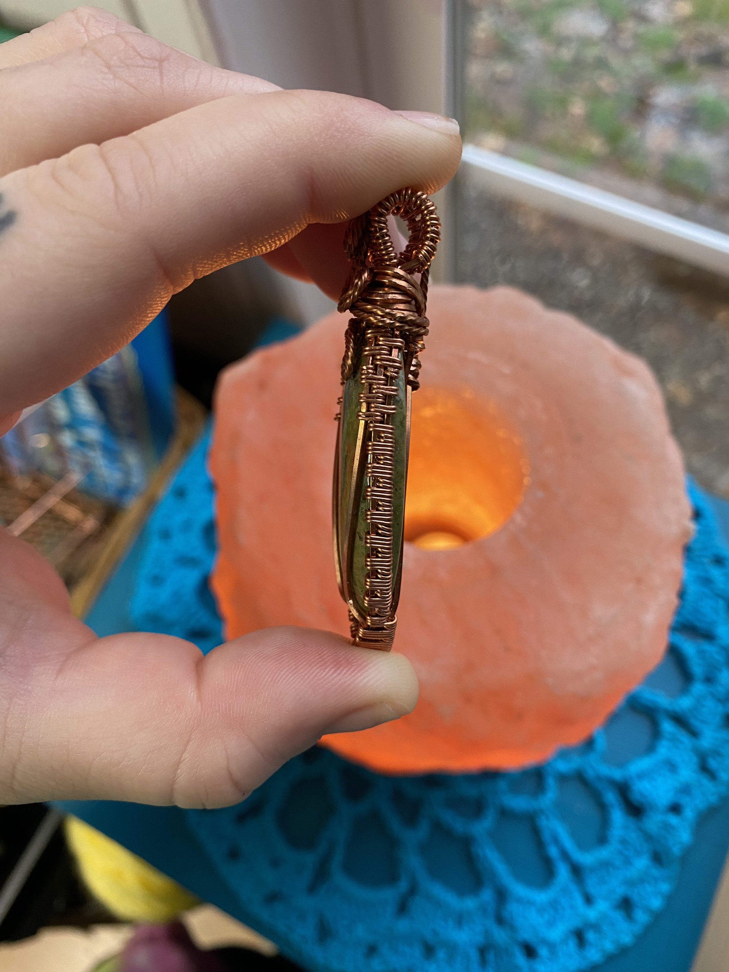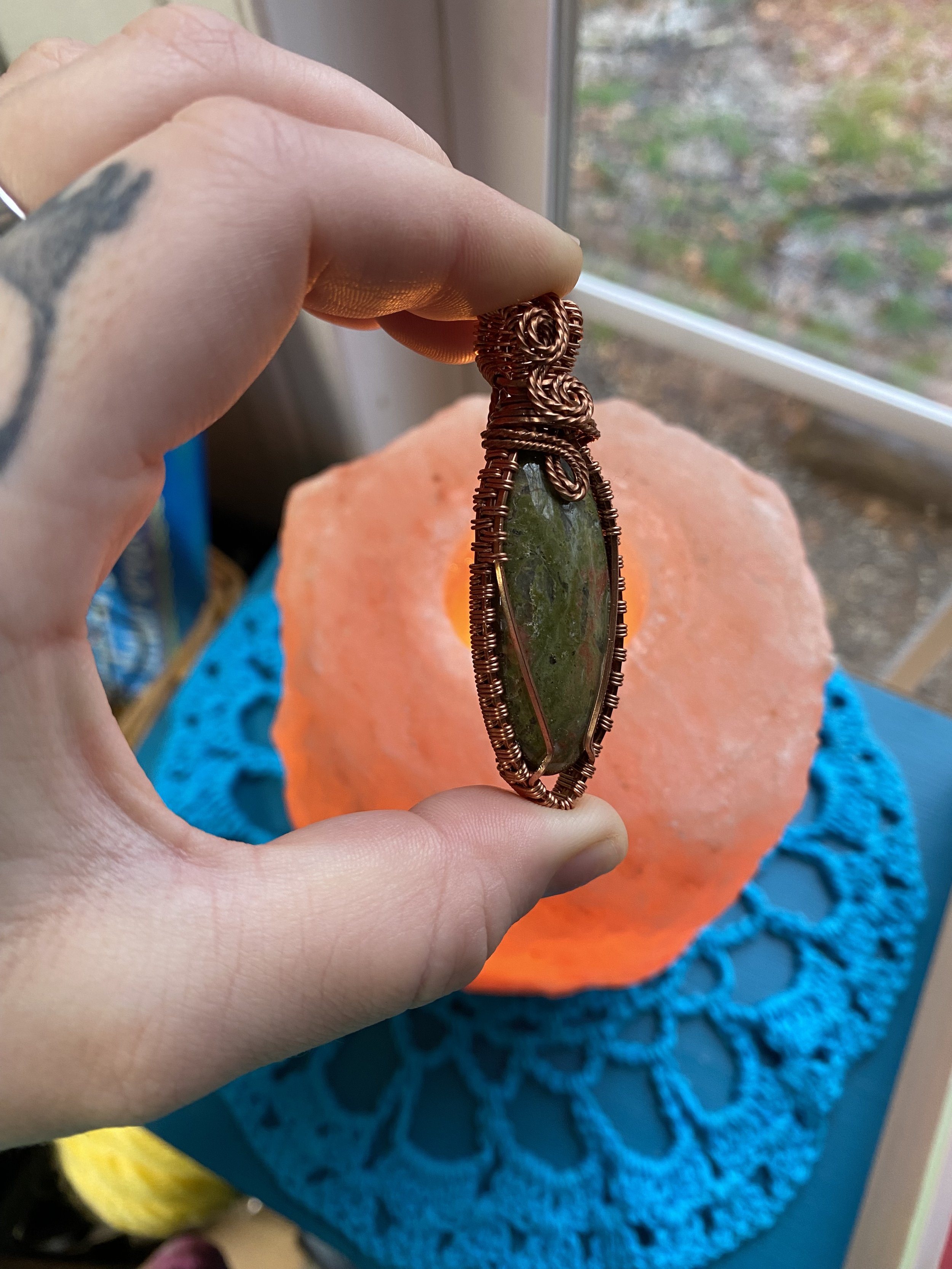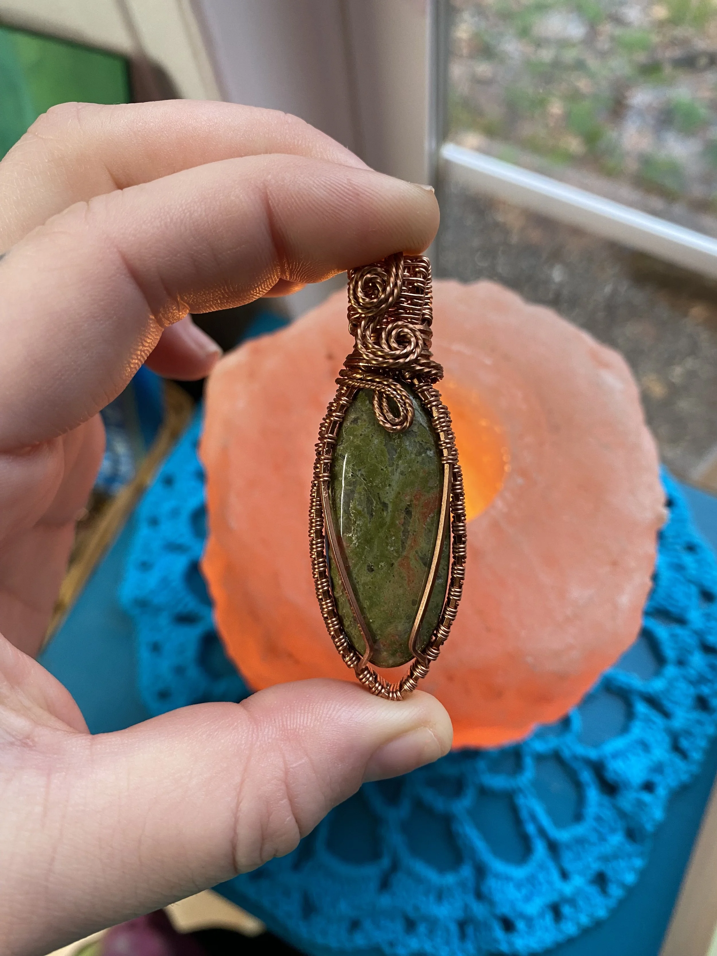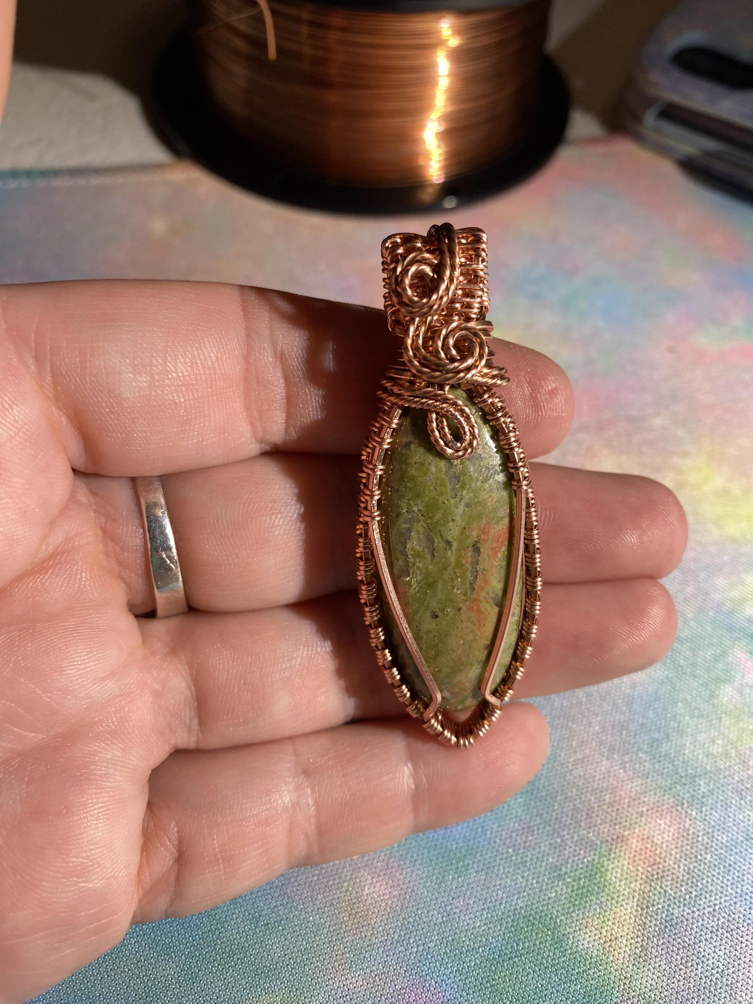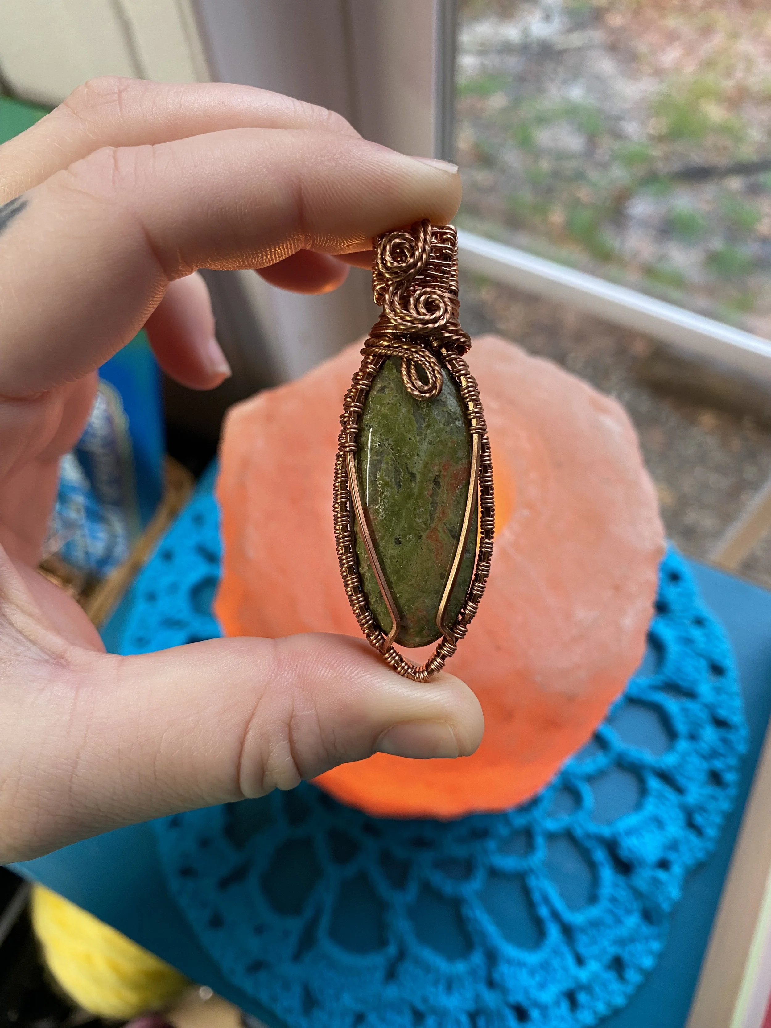 Shop › Unakite Intricate Copper Wire Wrap Image 1 of 14 Image 2 of 14 Image 3 of 14 Image 4 of 14 Image 5 of 14 Image 6 of 14 Image 7 of 14 Image 8 of 14 Image 9 of 14 Image 10 of 14 Image 11 of 14 Image 12 of 14 Image 13 of 14 Image 14 of 14 Unakite Intricate Copper Wire Wrap $55.00 sold out It’s been raining a lot here so I wasn’t able to get my usual sunny pictures outside. Sold Out Added! It’s been raining a lot here so I wasn’t able to get my usual sunny pictures outside. Reviews Reviewer Name Review Date Star Rating Description Posted on Etsy Product Show More