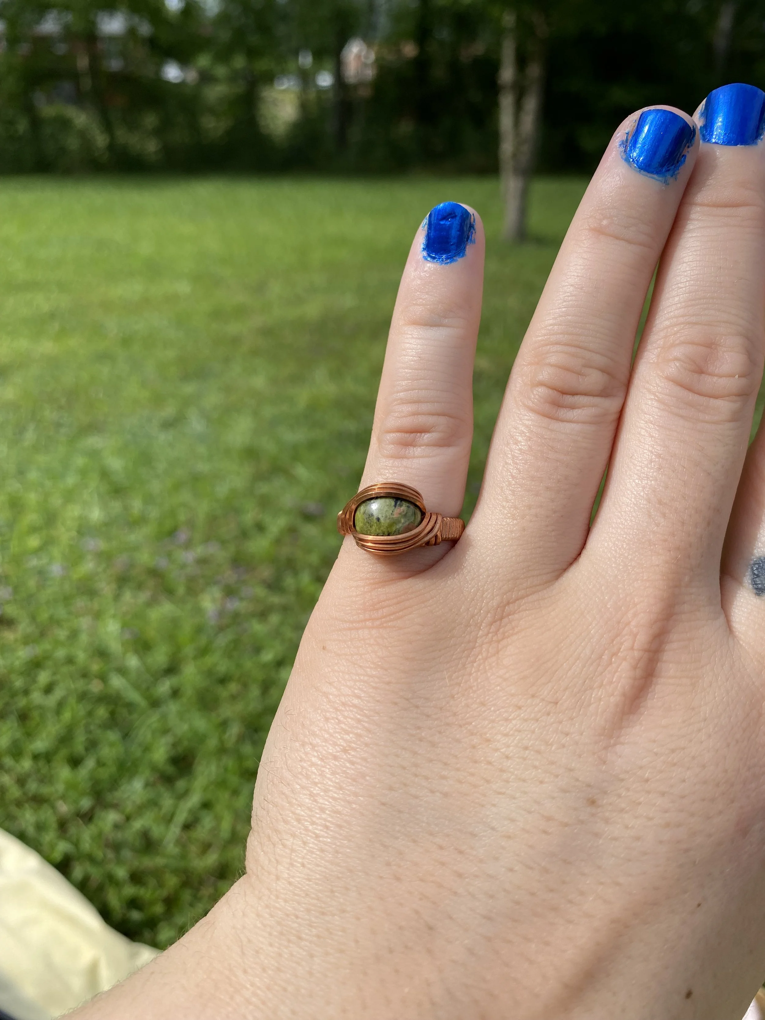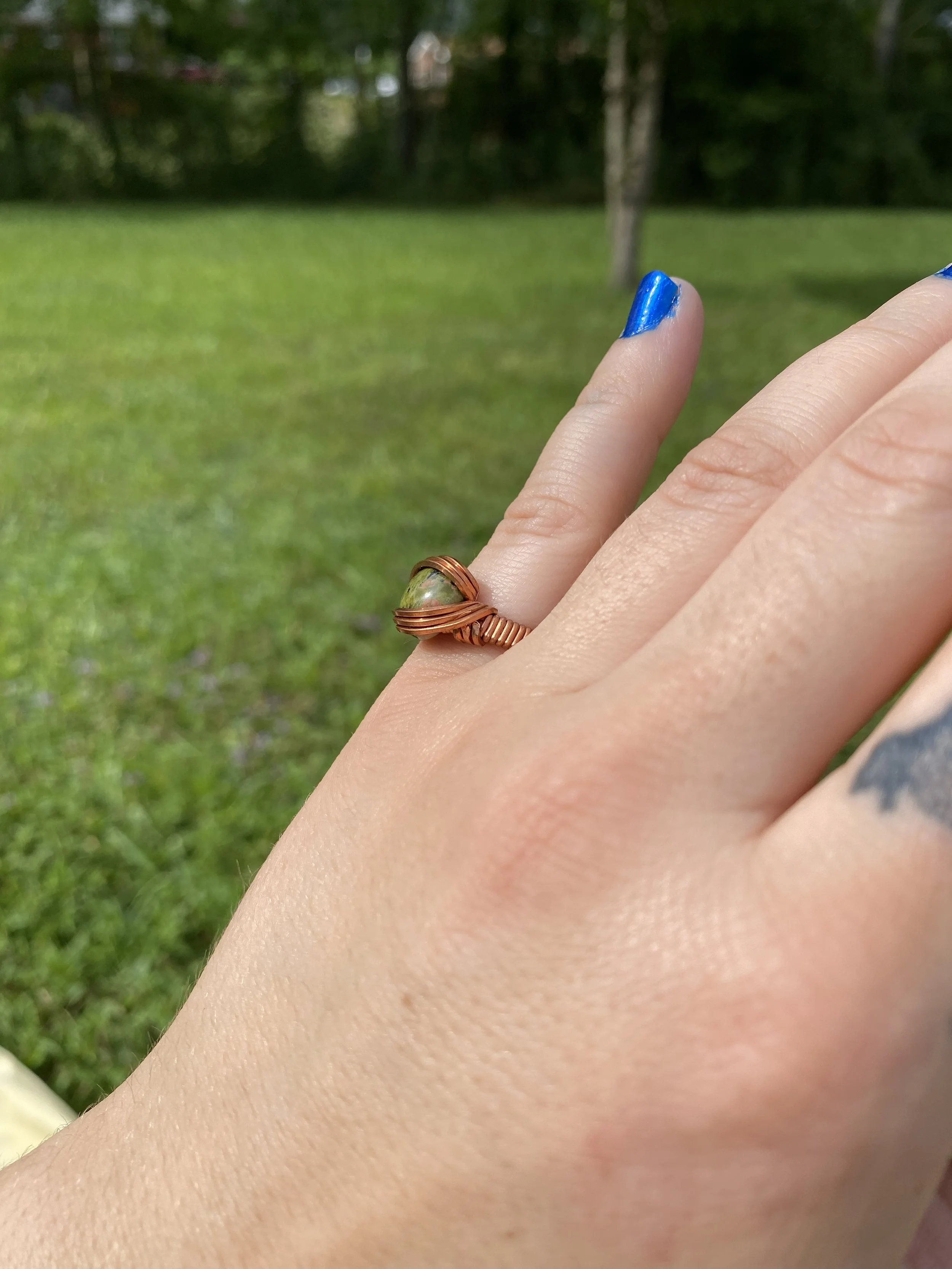 Unakite Ring Wrapped in Copper - Size 6