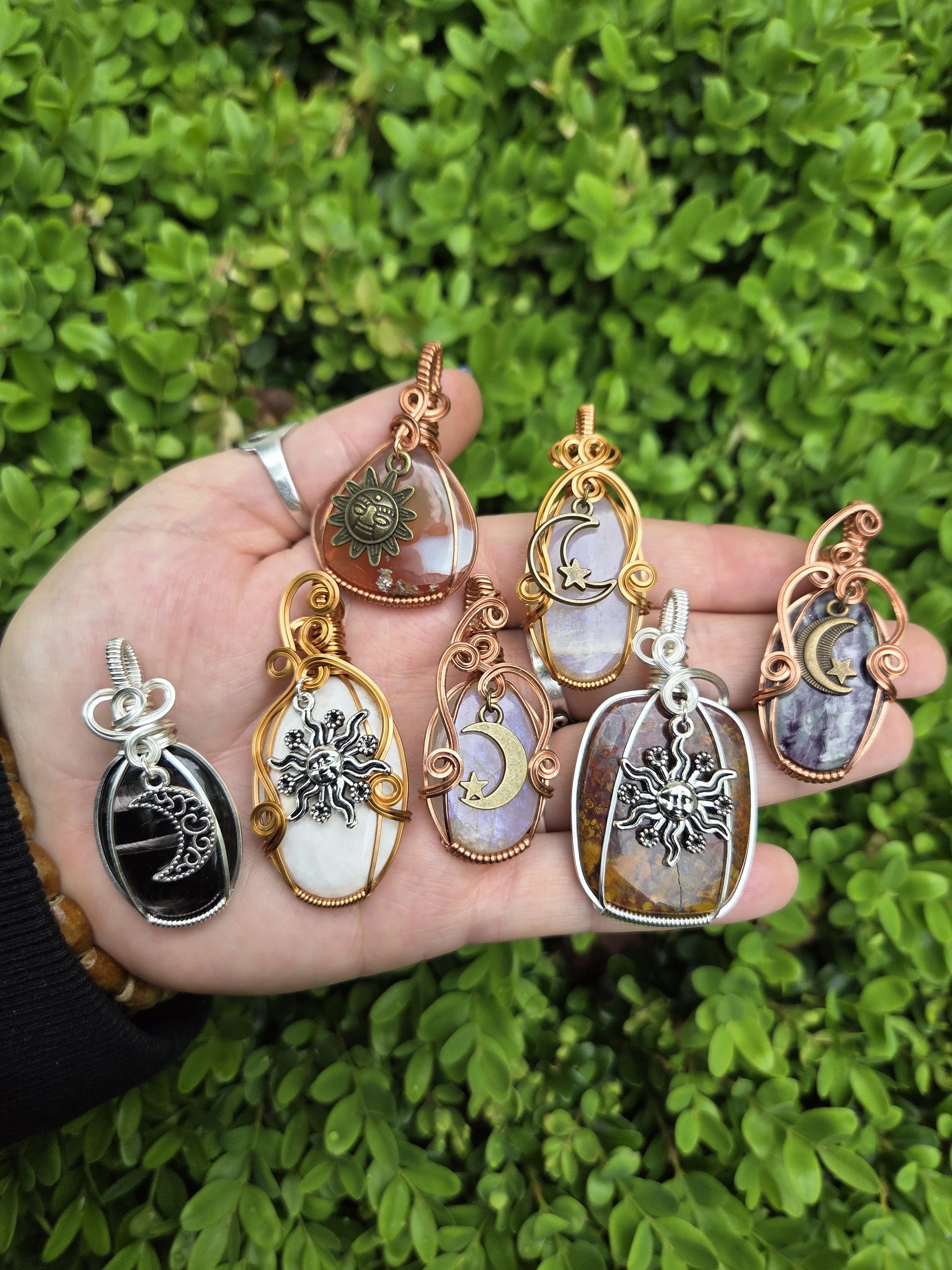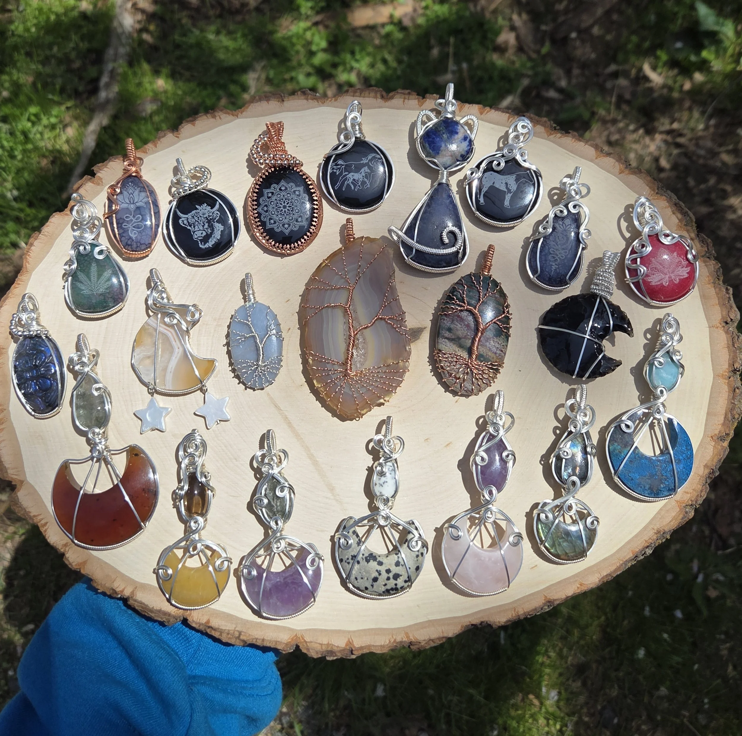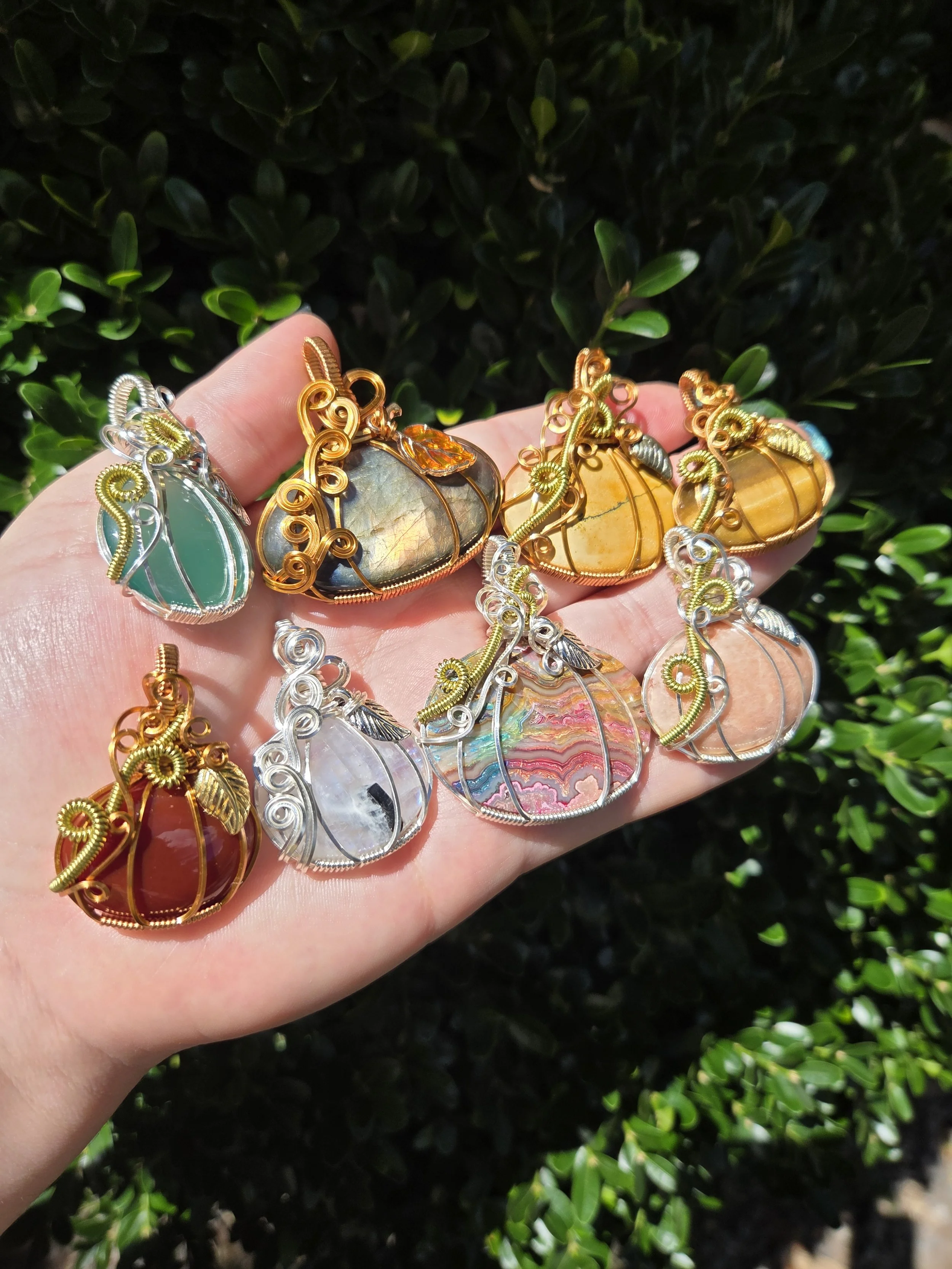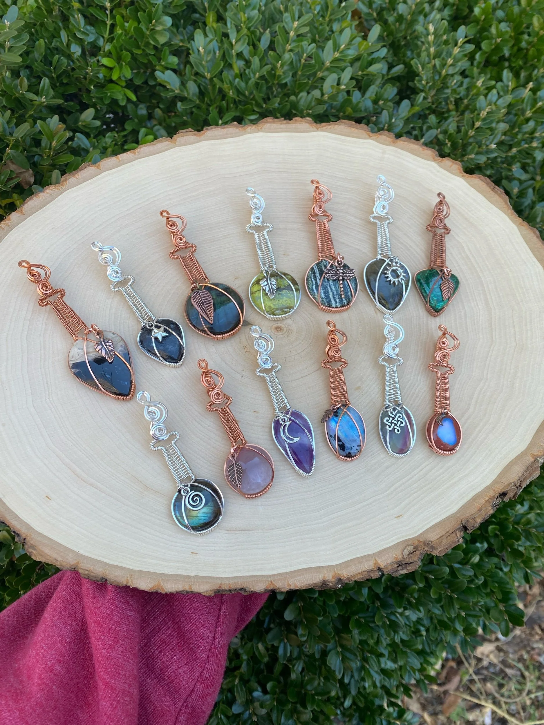 All wire wraps come with a free necklace to hang them on, please feel free to reach out if you’d like to special request a certain kind!